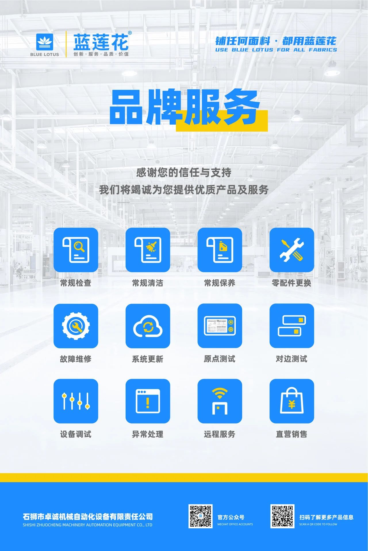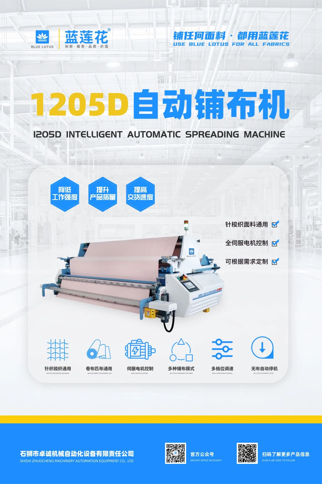 藍蓮花深耕鋪布機領域多年,致力“精工智造,賦能未來”。此次門店形象升級,不僅是視覺的統(tǒng)一,更是品牌內核的延伸 。